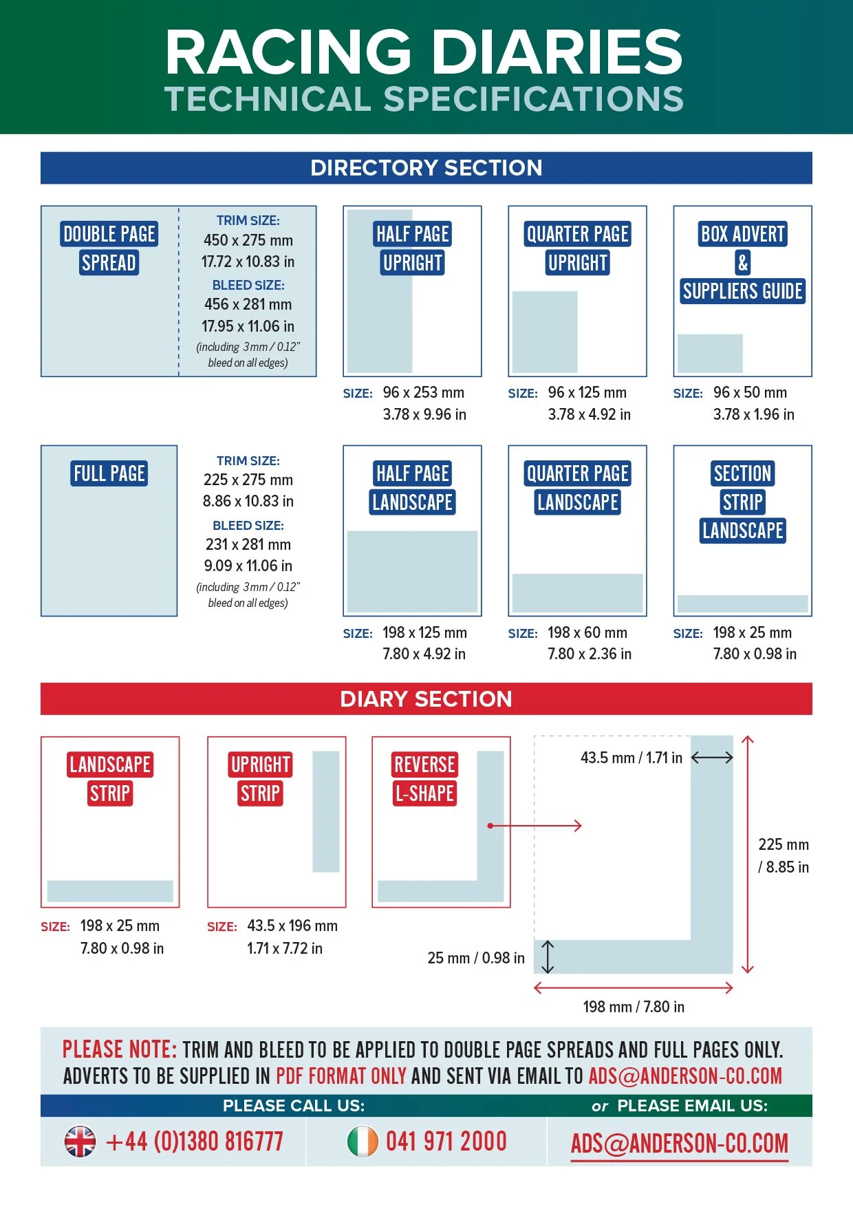 Half page adverts positioned at the front of the Diary or in specific positions within a section.